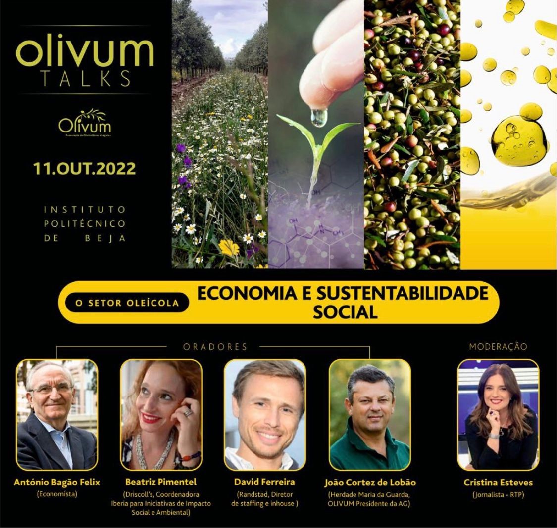 A Olivum – Associação de Olivicultores e Lagares do Sul vai promover no próximo dia 11 de outubro, no Instituto Politécnico de Beja, a nona edição das Olivum Talks.