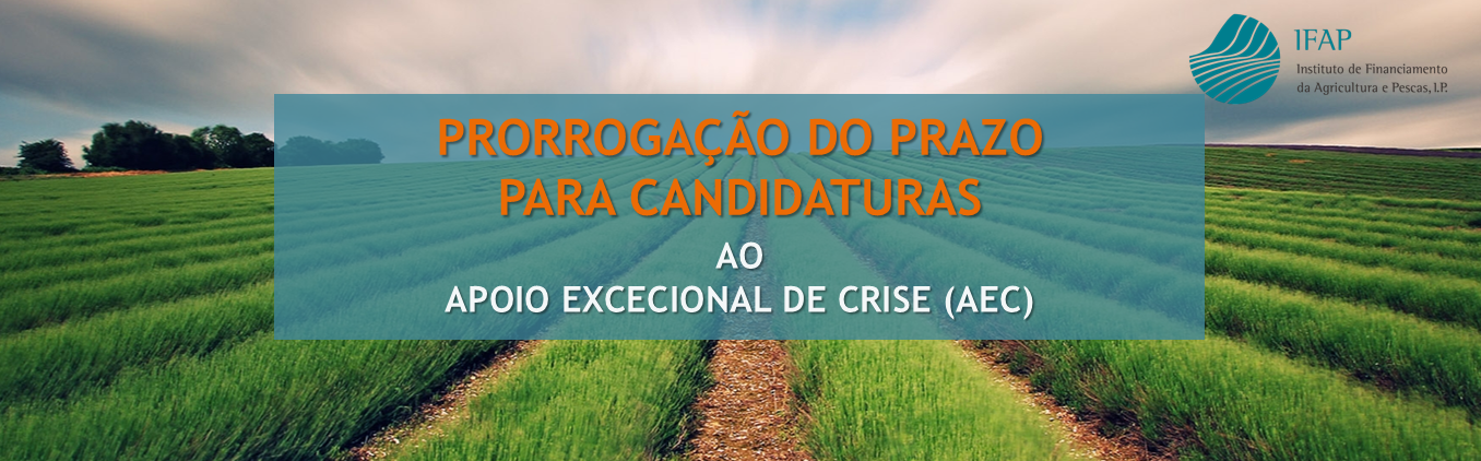 O período para apresentação de candidatura ao Apoio Excecional de Crise (AEC) encontra-se aberto e, embora decorrendo inicialmente apenas até ao dia 31 de maio de 2022, foi prorrogado para dia 9 de junho de 2022, de acordo com Deliberação do Conselho Diretivo do IFAP.