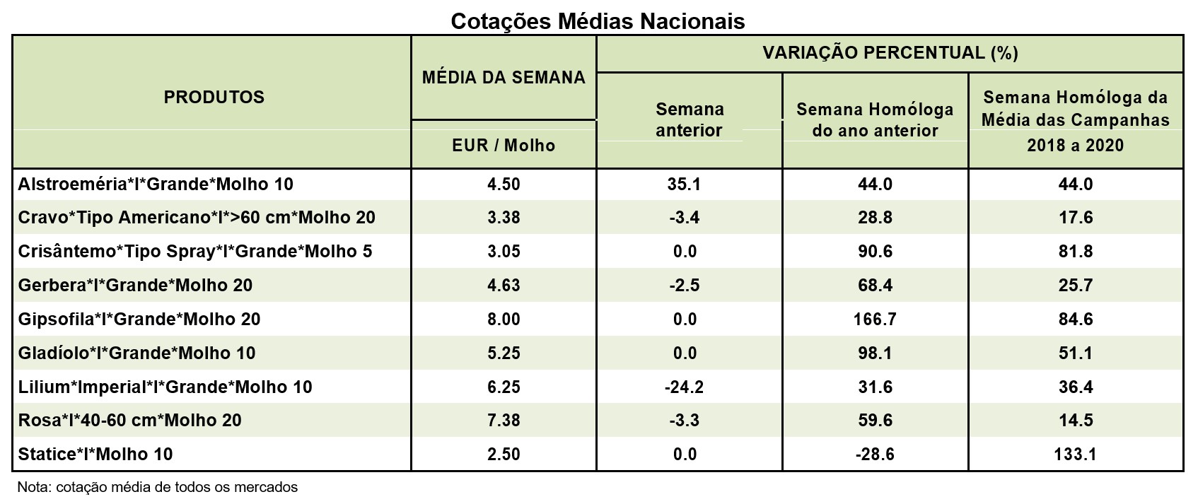 Cotações – Flores e Folhagens – 29 de novembro a 5 de dezembro de 2021