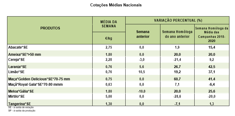 Morango – Na região Norte, na área de mercado Macedo de Cavaleiros, o volume de transações deste produto foi inferior em cerca de 80% relativamente à conjuntura anterior porque a produção já se encontra na fase final. A oferta foi baixa e a procura média/alta. Cotações estáveis. A comercialização efetuou-se através das grandes superfícies e comércios locais. Concorrência de produto importado mas em pequenas quantidades.