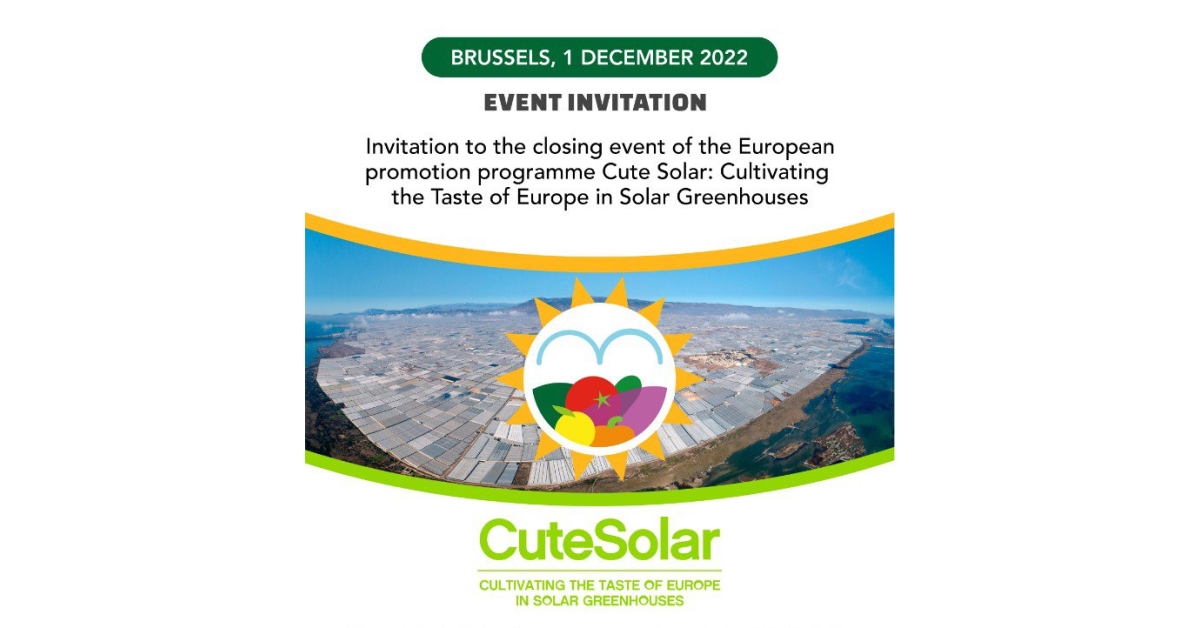 Next 1st December 2022, the Consortium of “Cute Solar-Cultivating the taste of Europe in solar Greenhouses” is organising a closing conference in European Parliament, Brussels. The conference will start at 11:30 a.m.