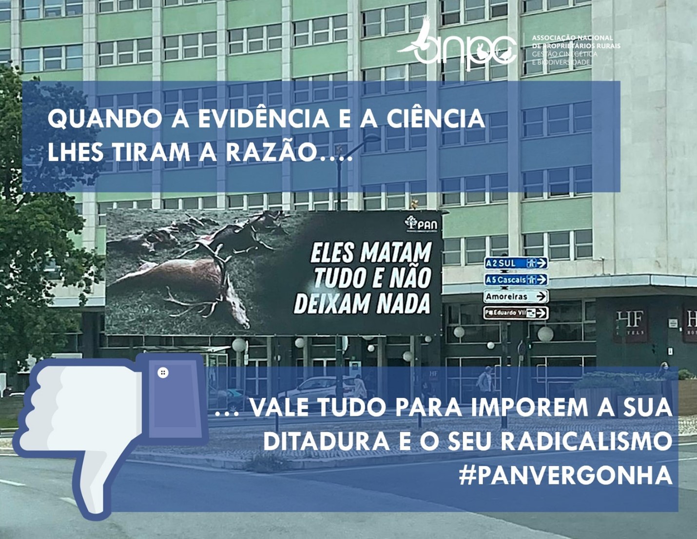 Praticada de forma sustentável é imprescindível para a boa gestão do território e para a geração de riqueza e emprego local. Apelar a emoções básicas para gerar medo e desconforto é, infelizmente, a prática do PAN. Uma prática condenável e lamentável. Ao contrário do PAN, vemos na liberdade de escolha individual um valor. Ao contrário do PAN, não temos uma agenda proibicionista, sem sentido ou racionalidade. A caça continuará a ser praticada em Portugal, com regras, com sustentabilidade, como um importante instrumento de gestão do território e sim, como atividade económica. Defendemos o direito de o PAN ser contra a caça, mas em nenhuma circunstância desistiremos de nos desmarcarmos da sua ideologia radical, sobretudo quando as suas campanhas de propaganda, no pior sentido da palavra, são impostas a todos no espaço público, como sucede com a colocação deste cartaz.