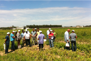 Neste campo foram instaladas 35 variedades da empresa holandesa STET, no final de Janeiro, que correspondiam a diferentes segmentos de mercado: variedades brancas e vermelhas para mercado fresco e exportação; variedades para fritura em palitos e rodelas. Os participantes puderam observar no local o desempenho das variedades e esclarecer algumas questões pertinentes sobre as mesmas, assim como o cultivo da batata e situação de mercado.