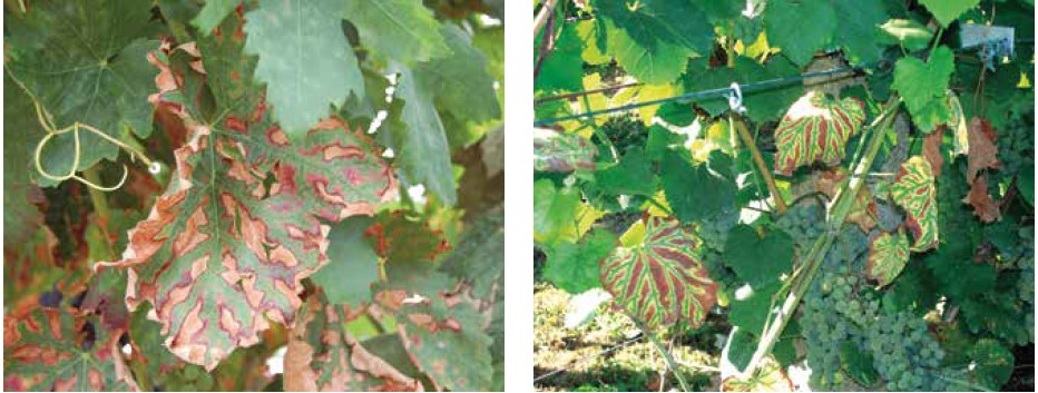 Sintomas de Esca nas folhas. Fonte: “Fitopalogia da Vinha”, Syngenta