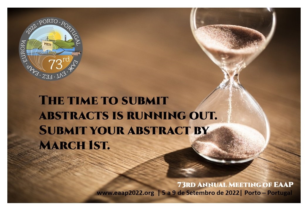 Termina já no próximo dia 1 de março o prazo de submissões de trabalhos para o EAAP 2022, o 73º Congresso Anual da EAAP (European Federation of Animal Science), que se realiza no Centro de Congressos da Alfândega do Porto, entre 5 e 8 de Setembro de 2022.