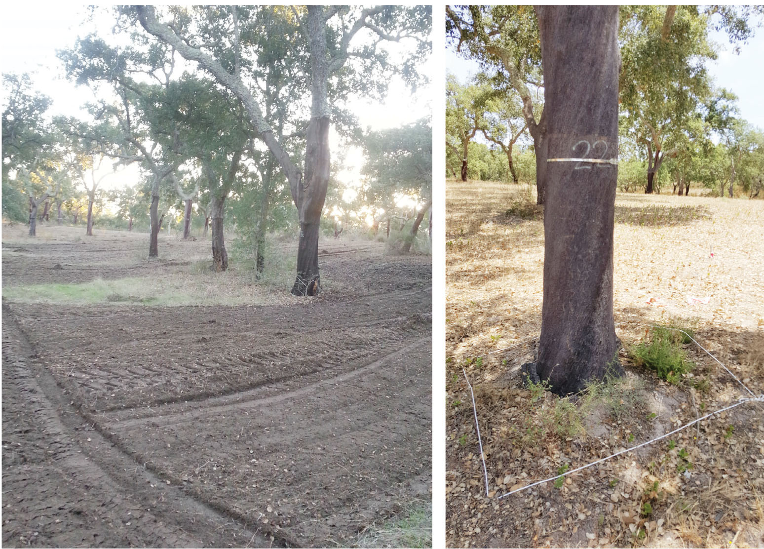 Num povoamento puro e irregular de sobreiro foi estabelecido um ensaio, para estudar o efeito no crescimento anual da cortiça e no seu calibre final, de duas práticas usuais de gestão do subcoberto em montado (tratamentos): i) remoção da vegetação espontânea e incorporação da biomassa no horizonte superficial do solo, seguida de plantação periódica de tremocilha; ii) manutenção da vegetação arbustiva espontânea, composta principalmente por Cistus salvifolius (25%), Ulex airensis (15%), Lavandula pedunculata (10%), entre outras espécies com menor expressão: Calluna vulgaris, Cistus crispus, Daphne gnidium e Genista triacanthos.