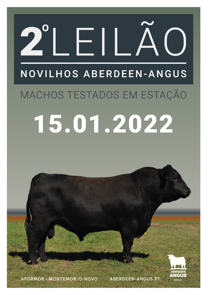 O II Leilão de Jovens Reprodutores Testados da raça Aberdeen-Angus, terá lugar no próximo dia 15 de Janeiro de 2022, na APORMOR, em Montemor-o-Novo.