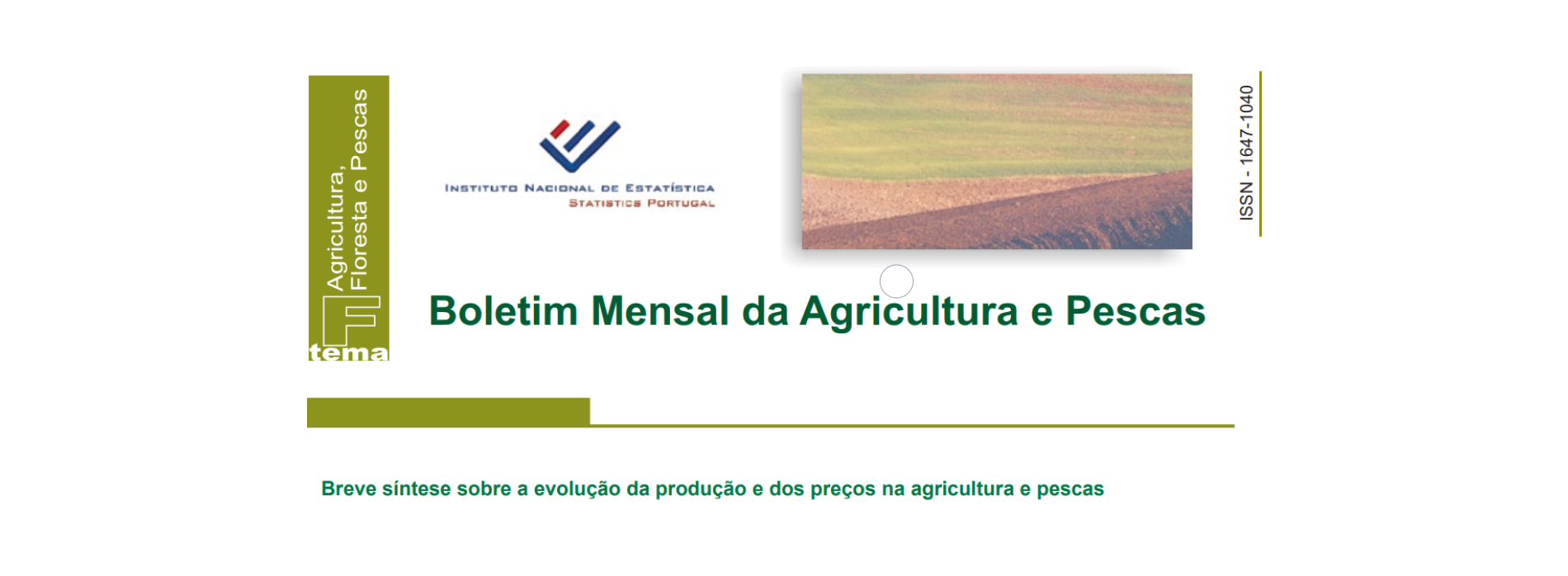 [Fonte: INE] O Boletim Mensal da Agricultura e Pescas divulga um conjunto de informação conjuntural relativa ao sector primário. A estrutura desta publicação proporciona, através de dados, gráficos e tabela disponibilizados, uma oportunidade de acompanhar estas temáticas e analisar a evolução através das séries cronológicas apresentadas. A análise qualitativa é acompanhada por alguns elementos gráficos.
