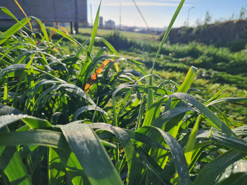 Escolhi apenas umas imagens mais bonitas para o instagram e para as “stories”, sem mostrar exactamente o que era, mas depois pensei que seria útil falar sobre isto. A erva que consegui agora colher nesta parcela, o campo do sol, semeada em outubro, sem rega nem adubação (levou chorume antes da sementeira) é uma “mistura biodiversa de aveia, azevém, ervilhaca e trevos anuais”. Trabalho de investigação de uma empresa de sementes. Fizeram um ensaio aqui perto e publicaram os resultados. Escolhi esta opção por ser a mais rústica, com boa produção em colheita precoce e estou a gostar dos primeiros resultados.