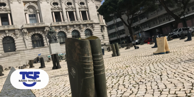 A Associação Nacional de Produtores de Leite manifestou-se na Avenida dos Aliados, no Porto, espalhando, simbolicamente, botas de trabalho de quem já “baixou os braços”.