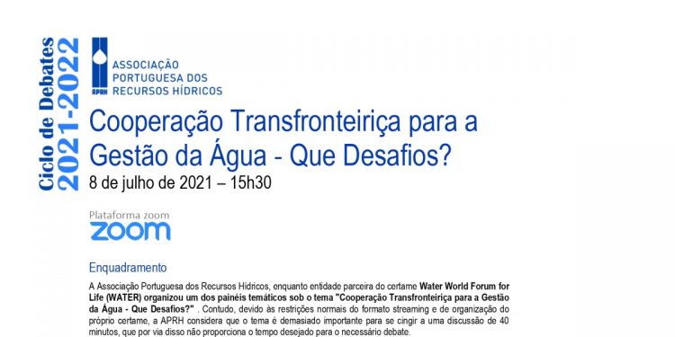 Nessa óptica, no dia 8/7/2021 a partir das 15:30 a APRH irá organizar novamente o debate, via internet, sob o tema “Cooperação Transfronteiriça para a Gestão da Água – Que Desafios?”, agora enquadrado no Ciclo de Debates APRH 21/22.