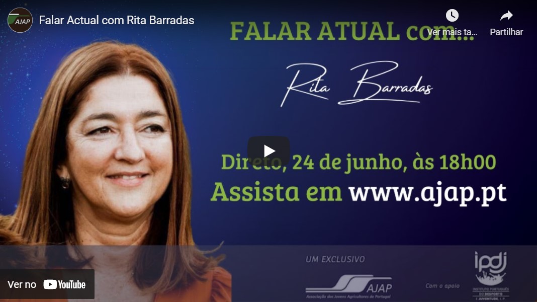 A AJAP – Associação dos Jovens Agricultores de Portugal em resposta aos grandes desafios nacionais e na senda da transição digital e climática, prossegue com o espaço de reflexão e debate intitulado FALAR ATUAL, que tem a honra de receber Sr.ª Gestora PDR2020, a Eng.ª Rita Barradas, dia 24 de junho, às 18h00, em direto – www.ajap.pt, com moderação da jornalista Fernanda Freitas.