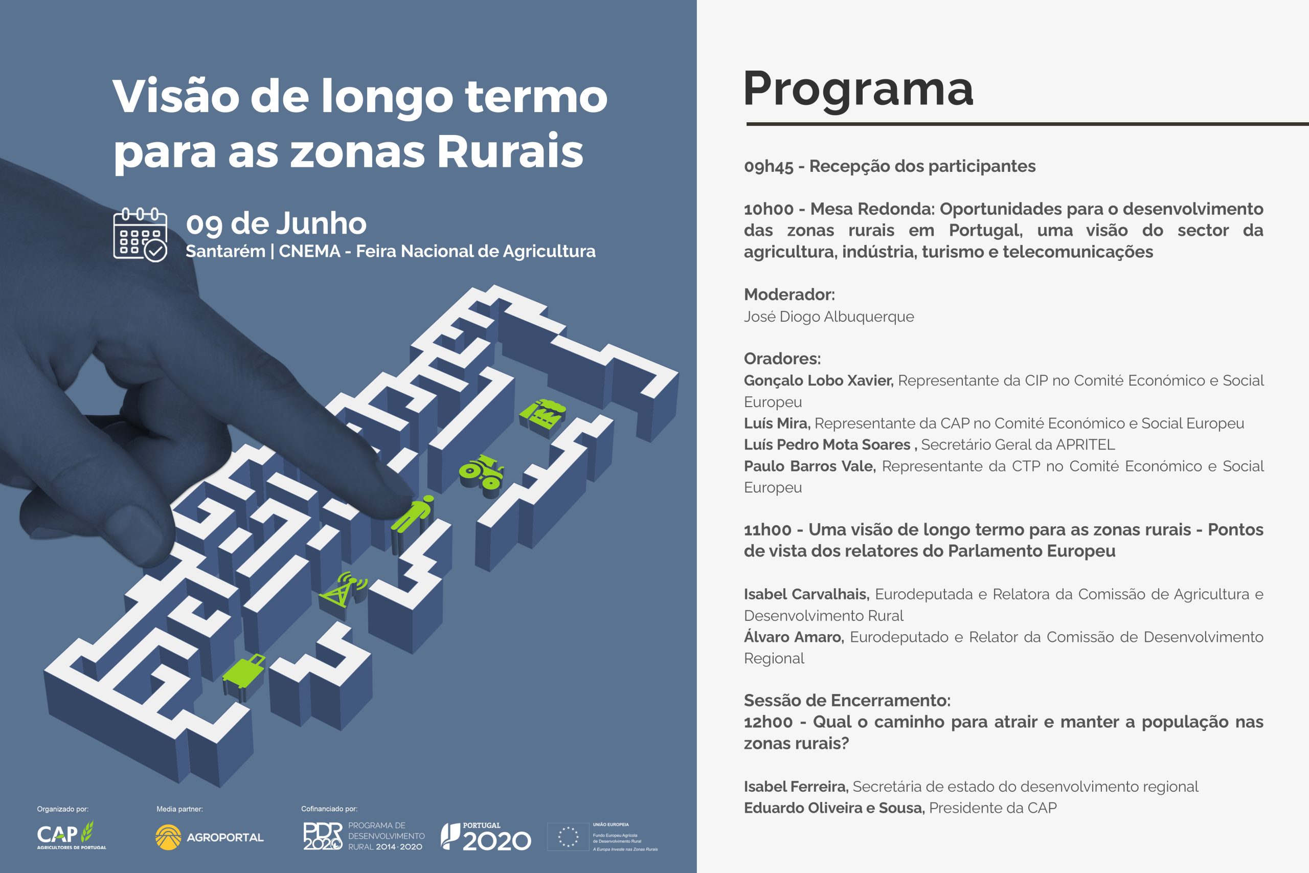 São estes temas que balizam esta conferência eminentemente política e para a qual estão convidados os eurodeputados Isabel Carvalhais (PS) e Álvaro Amaro (PSD), responsáveis nas suas comissões parlamentares pela visão de longo termo das zonas rurais, os membros nacionais presentes no Comité Económico e Social Europeu (CESE) e os representantes das empresas de telecomunicações.