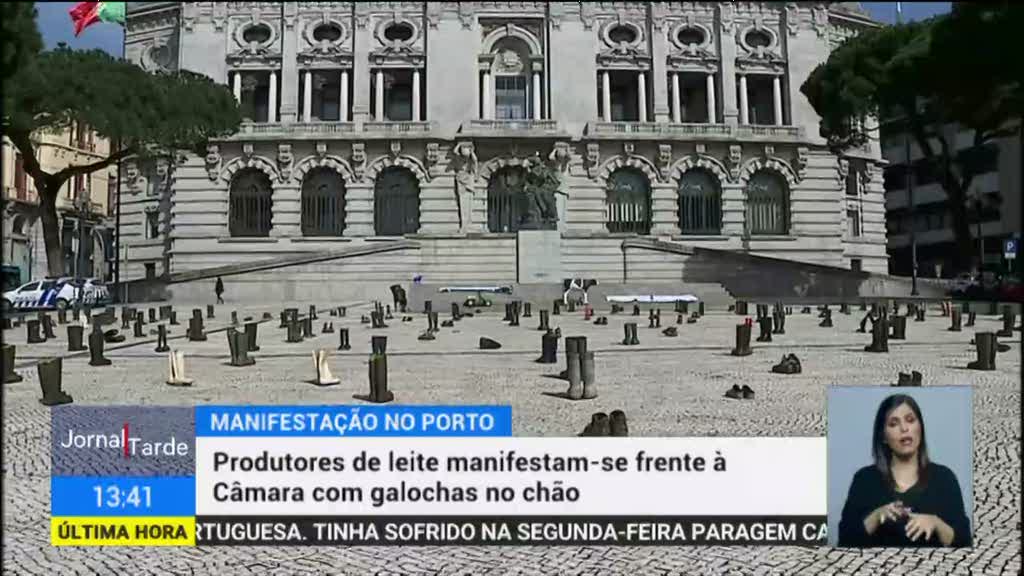 Os produtores de leite manifestaram-se esta manhã em frente à Câmara do Porto. Querem alertar o Governo e os partidos para a necessidade de aplicar a nova Política Agrícola Comum.
