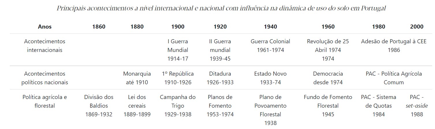 Em meados do século XIX, chuvas intensas em zonas montanhosas da Península Ibérica – e noutras áreas de montanha europeias – causaram cheias e deslizamentos de terras. Da necessidade de evitar esta erosão do solo, de proteger as linhas de água e de fixar os areais e dunas do litoral que avançavam sobre as terras férteis, surgiram as bases da política florestal nacional, cujas extraordinárias iniciativas de arborização constituíram também as primeiras intervenções conhecidas sobre os solos em Portugal.