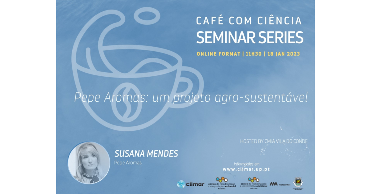 No próximo dia 18 de janeiro realiza-se mais um “Café com Ciência” que contará com a participação de Susana Mendes como oradora da palestra «Pepe Aromas: um projeto agro-sustentável». O CMIA de Vila do Conde será o anfitrião e conta com a co-organização do CIIMAR e do CMIA de Matosinhos.