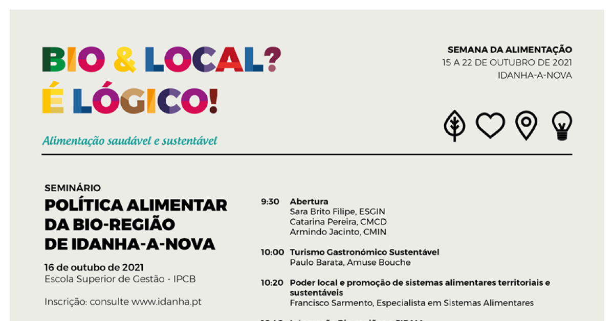 O Seminário “Política Alimentar da Bio-Região de Idanha-a-Nova” vai realizar-se no próximo sábado, dia 16 de outubro, a partir das 9h30, na Escola Superior de Gestão de Idanha-a-Nova (ESGIN).
