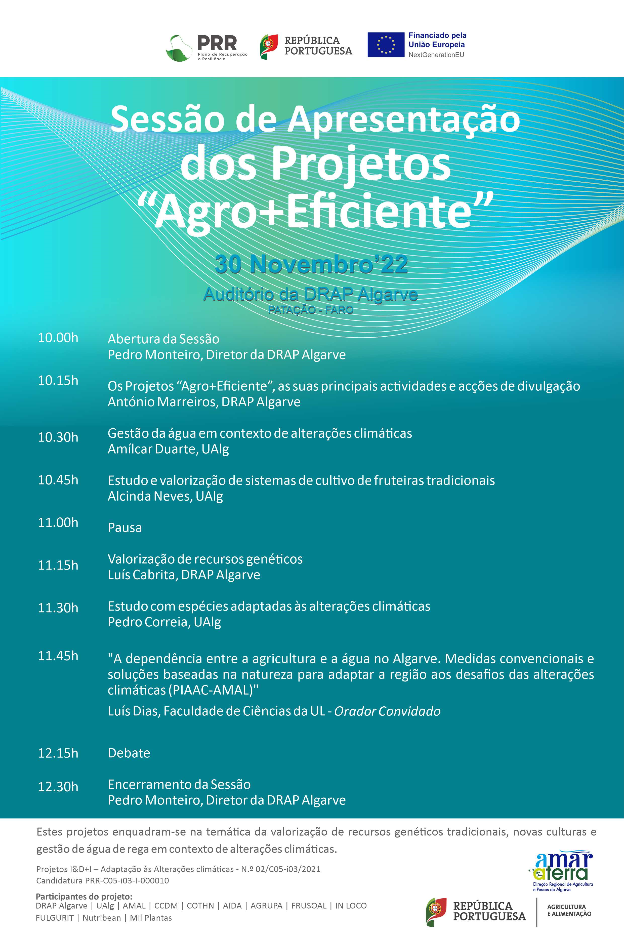 No sentido de estudar estas questões, a DRAP Algarve apresentou uma candidatura, que envolve várias outras entidades públicas e privadas, enquadrada na temática da valorização de recursos genéticos tradicionais, novas culturas e gestão de água de rega em contexto de alterações climáticas, ao PRR/Agenda de Investigação e Inovação para a Sustentabilidade da Agricultura, Alimentação e Agro – indústria (Projetos I&D+I – Adaptação às Alterações climáticas).