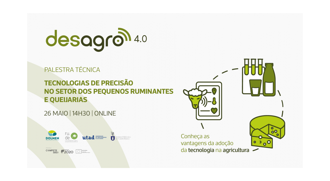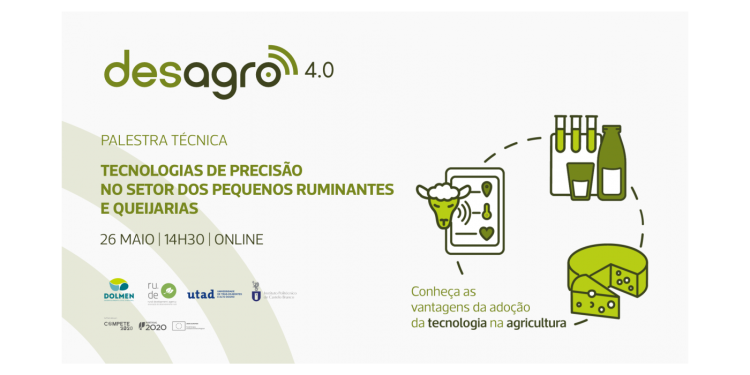 A “Tecnologia de Precisão nos Setores dos Pequenos Ruminantes e Queijarias” é o tema do seminário a realizar no próximo dia 26 de maio no âmbito do projeto Des Agro 4.0, promovido pela Dolmen em parceria com a Associação de Desenvolvimento Local congénere da Cova da Beira – RUDE, a Universidade de Trás-os-Montes e Alto Douro e o Instituto Politécnico de Castelo Branco.