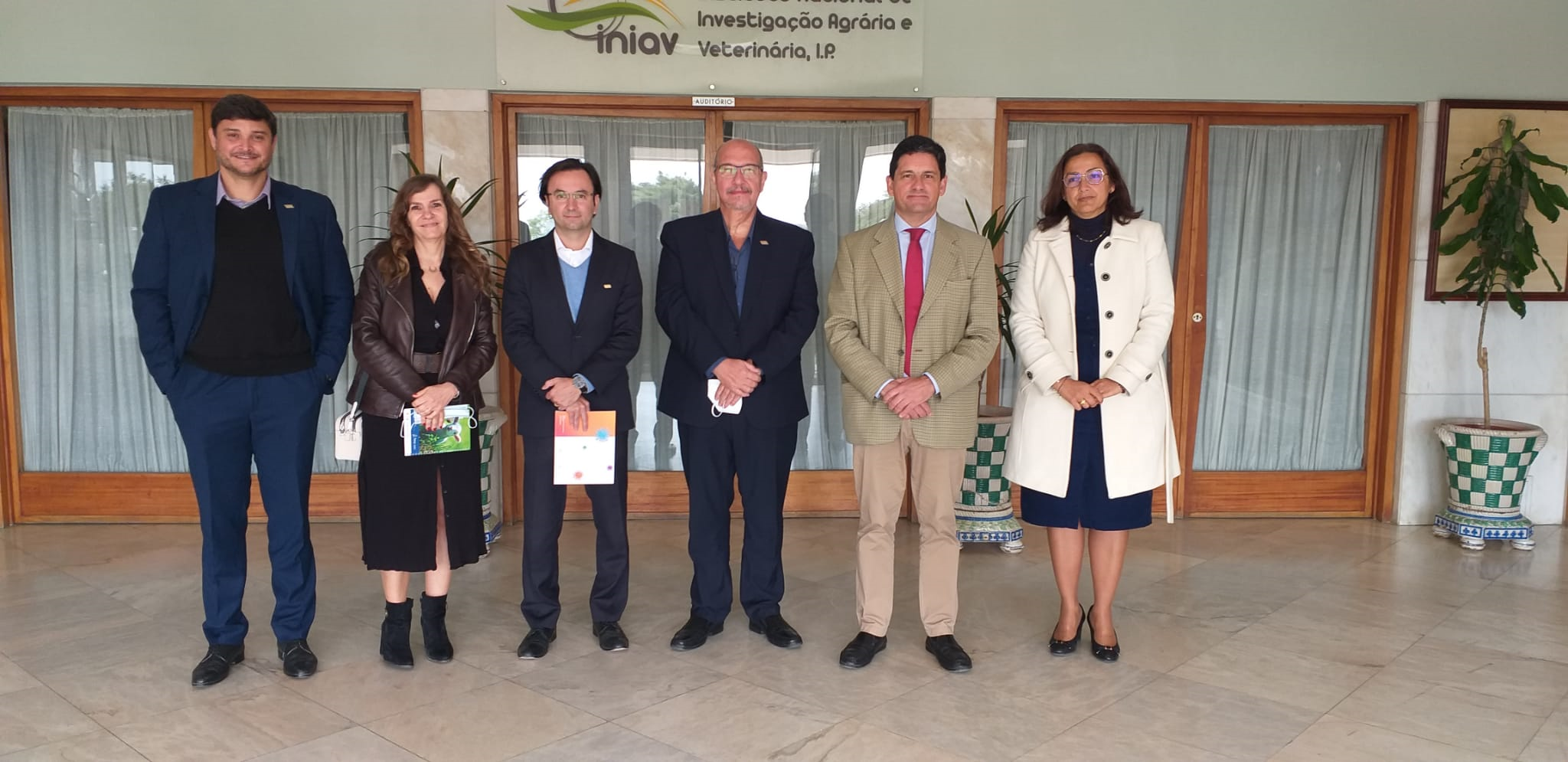 Na sequência do Memorando de Cooperação assinado entre o INIAV e a Empresa Brasileira de Pesquisa Agropecuária (EMBRAPA) em 2021, decorreu ontem, dia 28 de março, a visita de uma delegação da EMBRAPA aos Polos de Oeiras e Santarém do INIAV. A delegação foi constituída pelo Diretor de Inovação, Diretor para a Europa e Secretário de Pesquisa e Desenvolvimento, e teve como objetivo densificar a cooperação para a inovação entre o INIAV e a EMBRAPA.