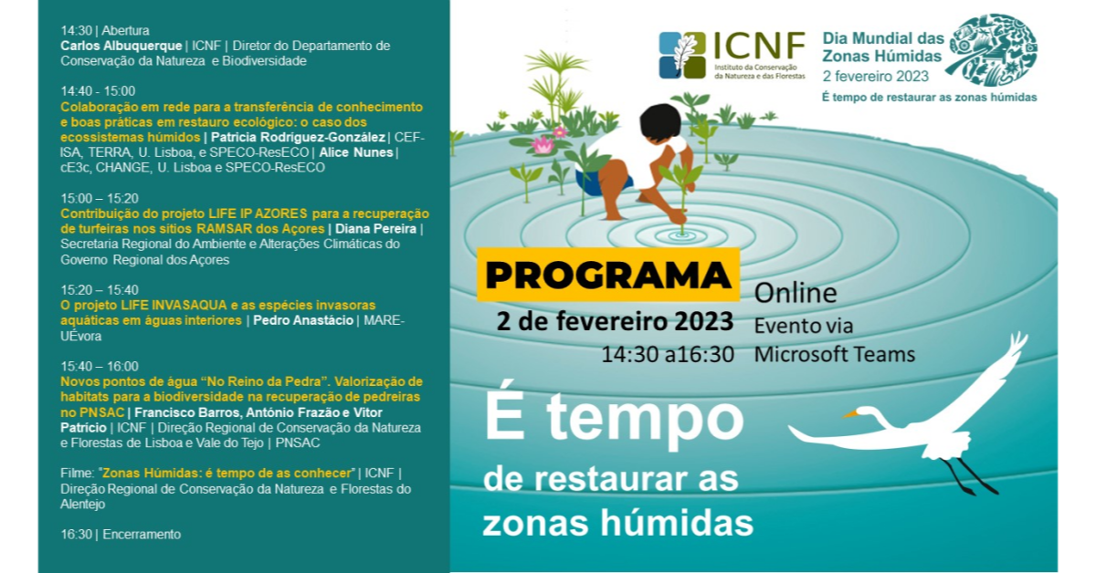 Realiza-se no dia 2 de fevereiro o Webinar: Dia Mundial das Zonas Húmidas, organizado pelo ICNF.