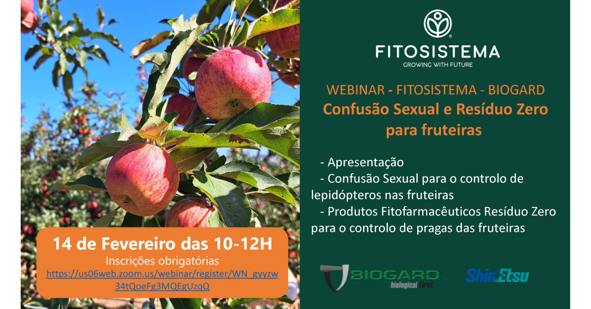 Decorre no dia 14 de fevereiro o Webinar Fitosistema Bioguard para fruteiras.