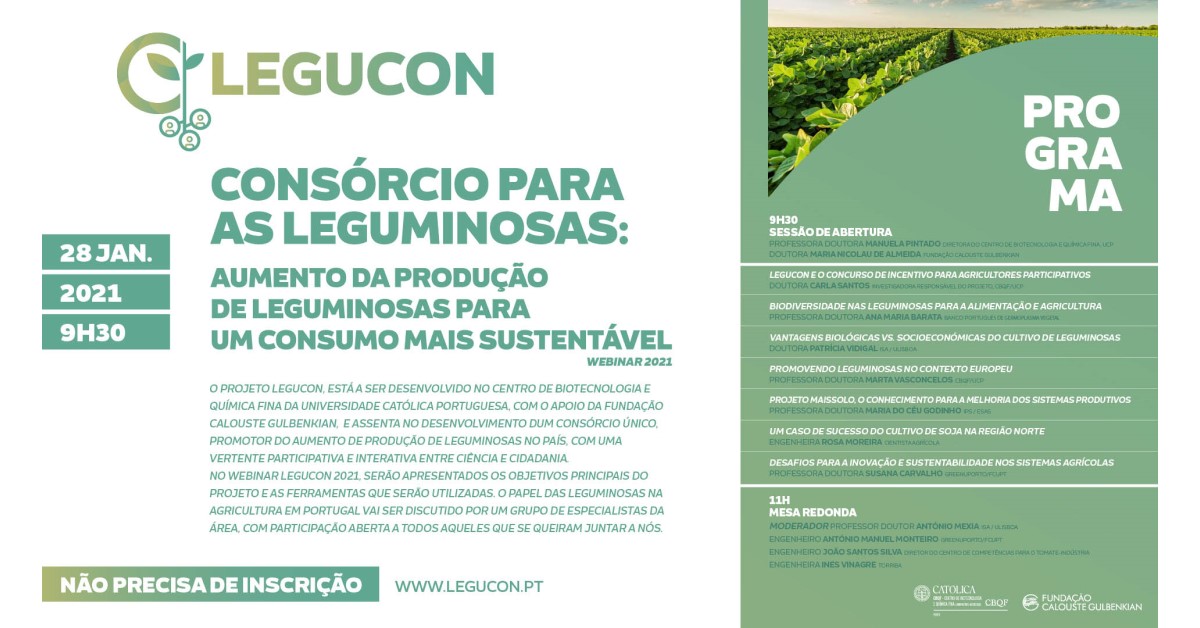 Dia 28 de Janeiro realizar-se-á o Webinar LeguCon 2021, onde especialistas da área irão discutir o valor, obstáculos e vantagens da adesão ao cultivo de leguminosas. O evento será aberto a todos e transmitido via YouTube.