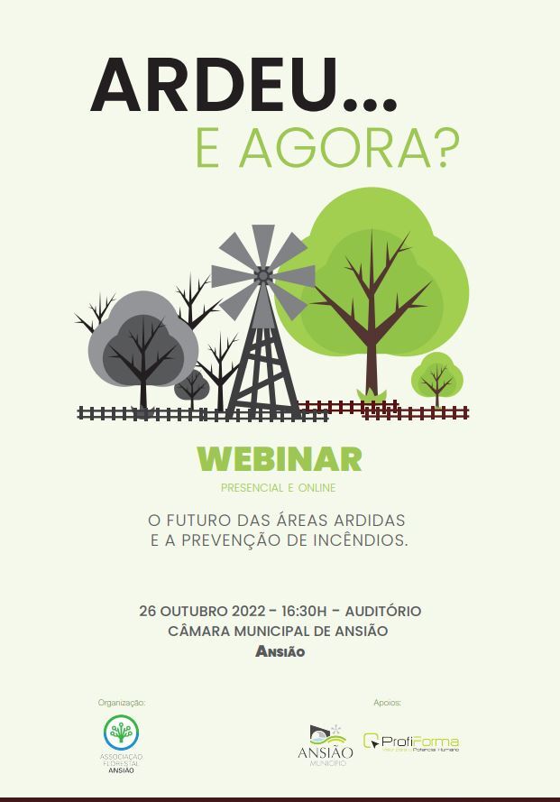 A Associação Florestal de Ansião, está a promover um Webinar sobre o impacto dos incêndios e possíveis alternativas para prevenir: “O FUTURO DAS ÁREAS ARDIDAS E A PREVENÇÃO DE INCÊNDIOS”, com o apoio logístico do Município de Ansião e da Profiforma.