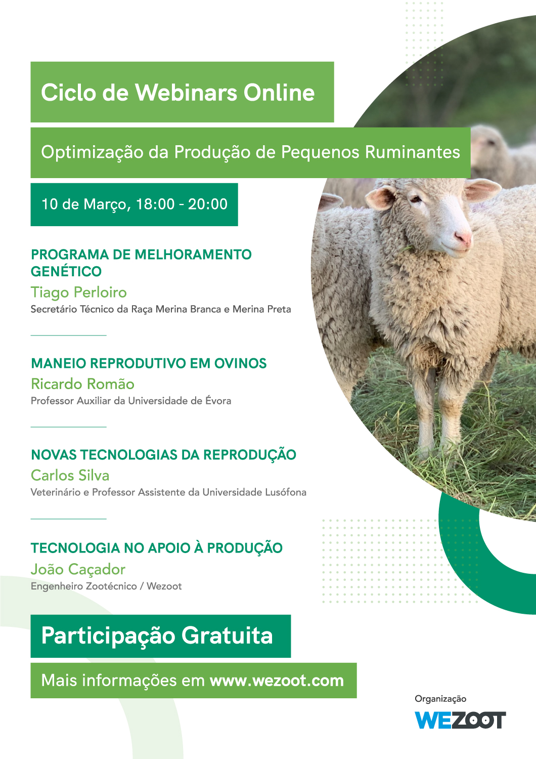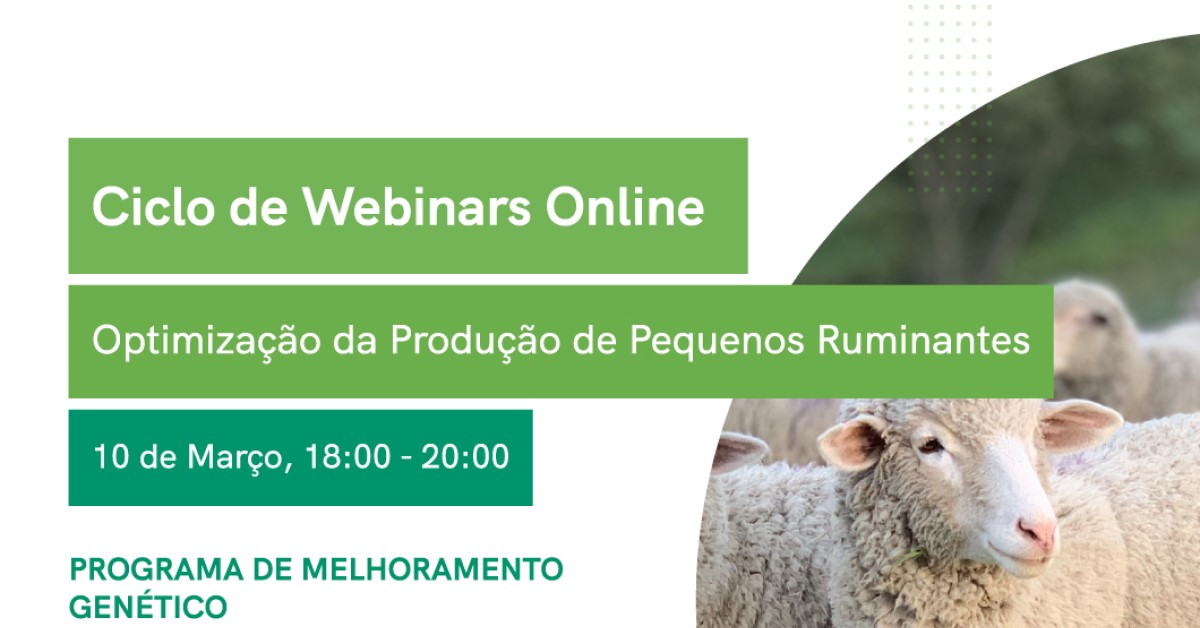O primeiro webinar acontece no dia 10 de março, entre as 18h e as 20h, e irá dedicar-se à Otimização de Produção de Pequenos Ruminantes. A sessão tem o seguinte programa: