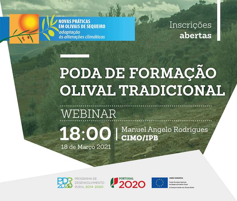 No âmbito do Grupo Operacional “Novas práticas em olivais de sequeiro: estratégias de mitigação e adaptação às alterações climáticas” irá decorrer online, no próximo dia 18 de Março às 18h00, o Webinar “Poda de formação para olival tradicional”.