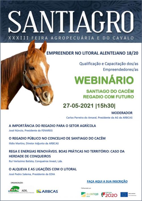 No âmbito projeto Empreender no Litoral Alentejano 18/20, a ADL promove os seguintes Webinários na SANTIAGRO Digital 2021, através do Microsoft Teams: