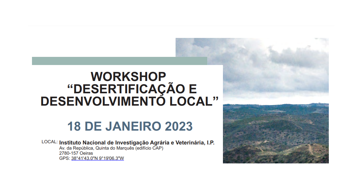 Realiza-se no próximo dia 18 de janeiro, no INIAV, em Oeiras, o workshop “Desertificação e Desenvolvimento Local”, no âmbito do projeto “Dinâmicas, condicionantes e potencialidades dos territórios rurais de baixa densidade demográfica e elevado risco de desertificação”.