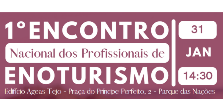 O I Encontro Nacional dos Profissionais de Enoturismo será realizado no dia 31 de Janeiro de 2023, no Edifício Ageas Tejo, na Praça do Príncipe Real, 2 – Parque das Nações, em Lisboa, a partir das 14h30.