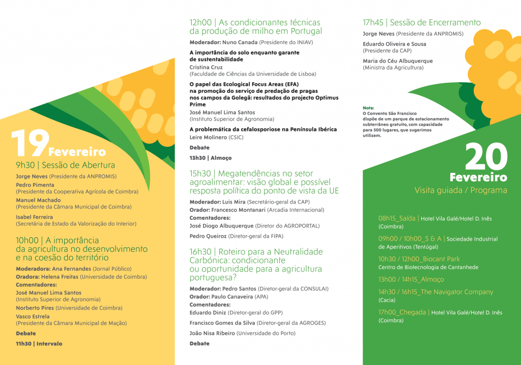 O 10º Colóquio Nacional do Milho reúne, a 19 de Fevereiro, no Convento São Francisco, em Coimbra, agricultores, cientistas e responsáveis políticos num debate sobre o papel da agricultura nos grandes desafios da atualidade: coesão do território, neutralidade carbónica e megatendências agroalimentares.