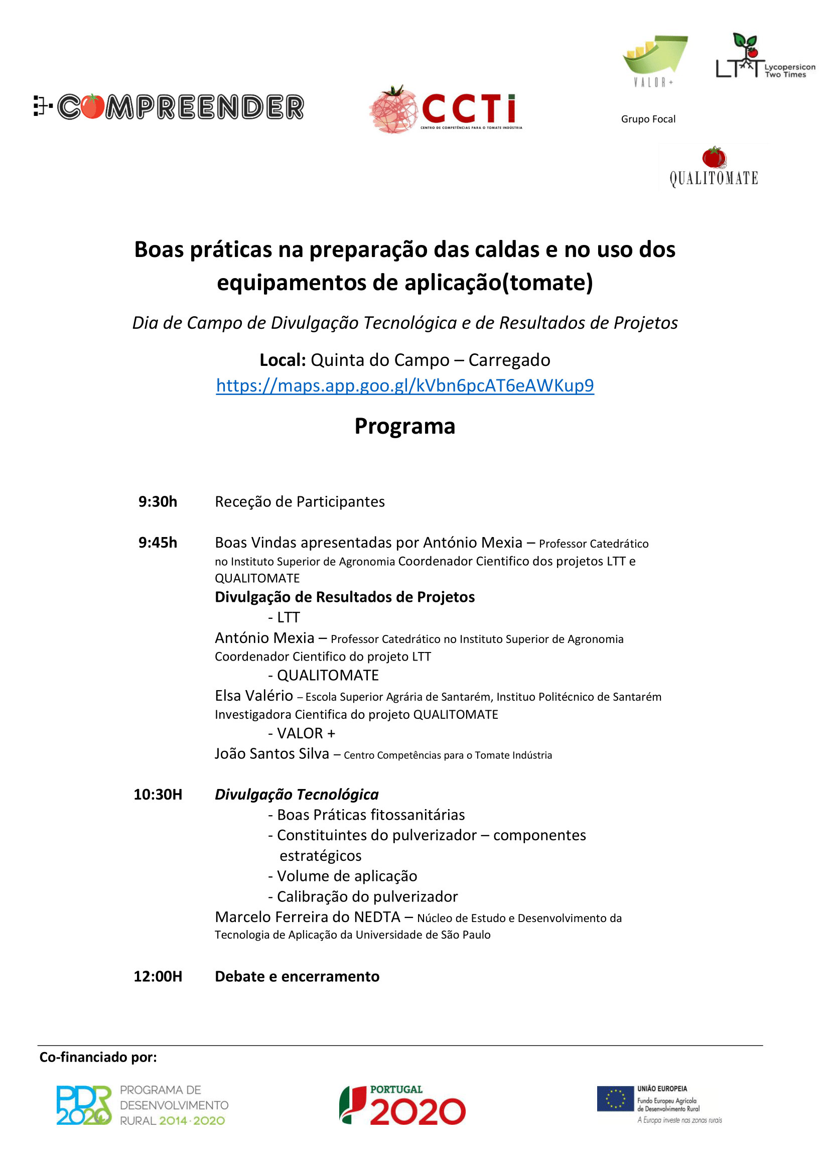 Para além do Drº Marcelo Ferreira, esse dia contará com a presença do Prof. António Mexia, da Drª Elsa Valério e do Engº João Santos Silva que apresentarão, respetivamente, os resultados dos projetos LTT, QUALITOMATE e VALOR+.