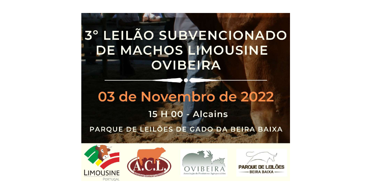 Realiza-se no dia 3 de novembro em Alcains o 3.º Leilão Subvencionado de machos Limousine Ovibeira.