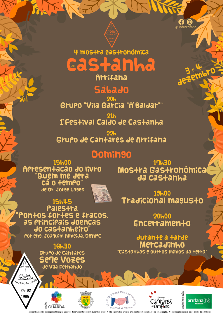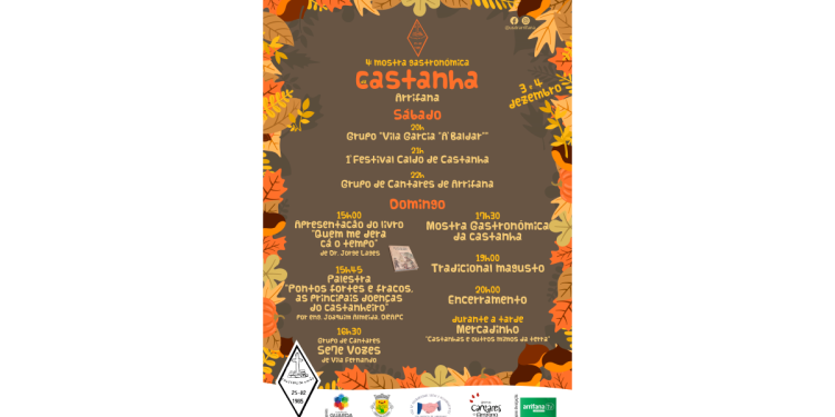 É já no primeiro fim de semana de dezembro que irá decorrer mais uma edição do evento que tem como principal objetivo a divulgação e valorização da castanha. Para além deste ano a organização dedicar dois dias ao evento, há outra novidade que é a realização do 1º Festival do Caldo de Castanha, que irá decorrer no dia 3 de dezembro, pelas 21h00, onde se pretende apurar o Caldo de Castanha representativo da Freguesia.