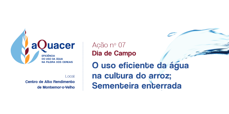 Neste âmbito, vão ter lugar no próximo dia 27 de Julho no Vale do Mondego, a seguintes acção: _7ª ação: O uso eficiente da água na cultura do arroz: Sementeira enterrada.