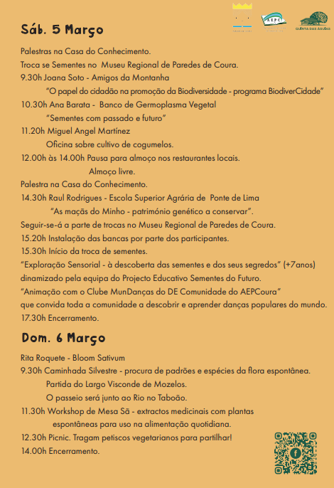 No âmbito da 8 ª Feira de TROCA DE SEMENTES de Paredes de Coura, terá lugar no próximo dia 5 de março de 2022, a apresentação “Sementes com passado e futuro”, feita pela Coordenadora do Banco de Germoplasma Vegetal (INIAV), Ana Maria Barata.