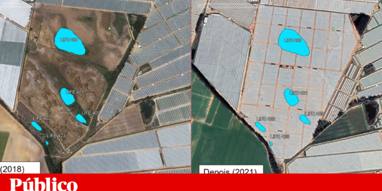 Como se pode constatar através de imagens aéreas do Google Earth, a zona onde existiam os cinco charcos temporários “foi terraplanada para o espaço ser preenchido por estufas”, referiu a dirigente da LPN.