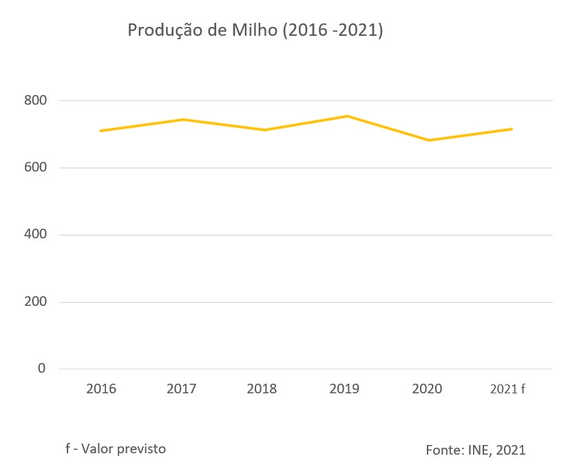 O INE prevê que a produção global de milho, de regadio e de sequeiro, alcance 716 mil toneladas valor 5% acima do registado na última campanha e próximo da média do último quinquénio.