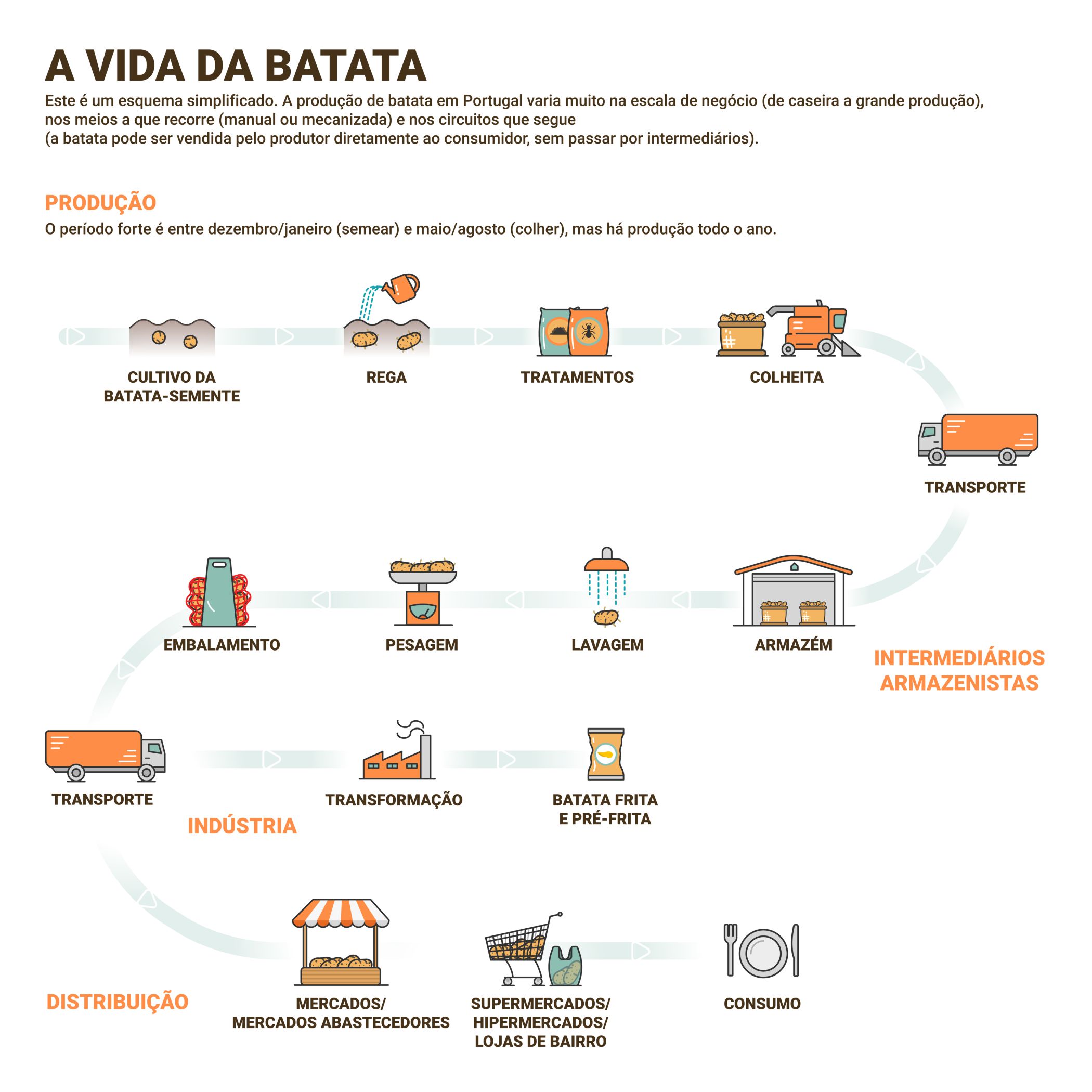 A verdade é que reconstituir o percurso do valor da batata desde a terra até ao prato não é tarefa fácil. Entre segredos do negócio, diferentes variedades de batata, pequena e grande produção, vários canais de escoamento, distribuição local ou de grande escala, é muito difícil dizer “esta batata, plantada neste local, custou X euros a ser produzida e foi vendida ao consumidor final a Y euros”.