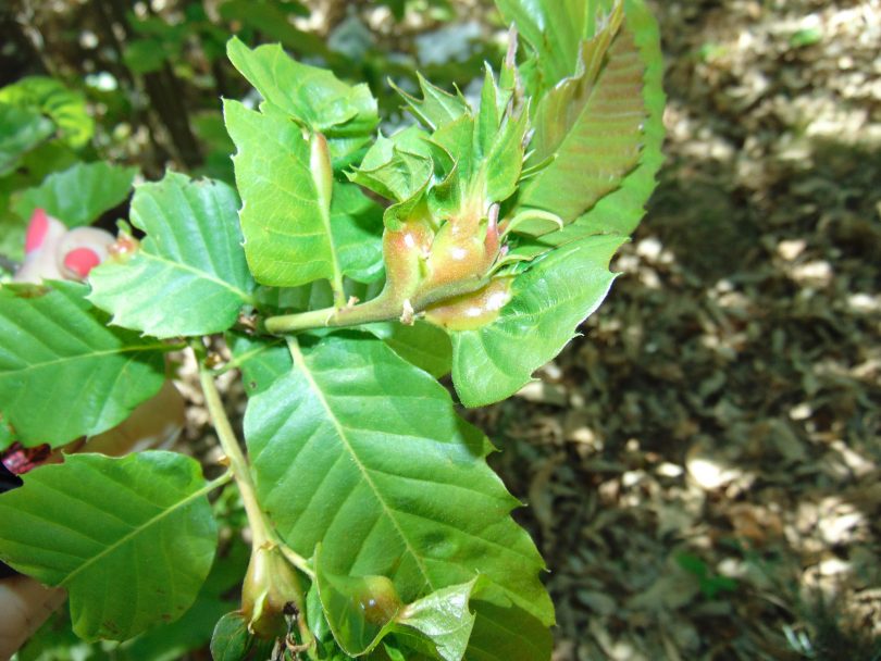 Na primeira foto: Galha induzida pelo ataque da vespa-das-galhas-do-castanheiro