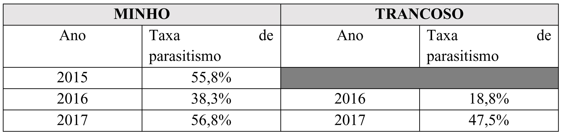 Taxa de parasitismo autóctone associada à vespa-das-galhas-do-castanheiro