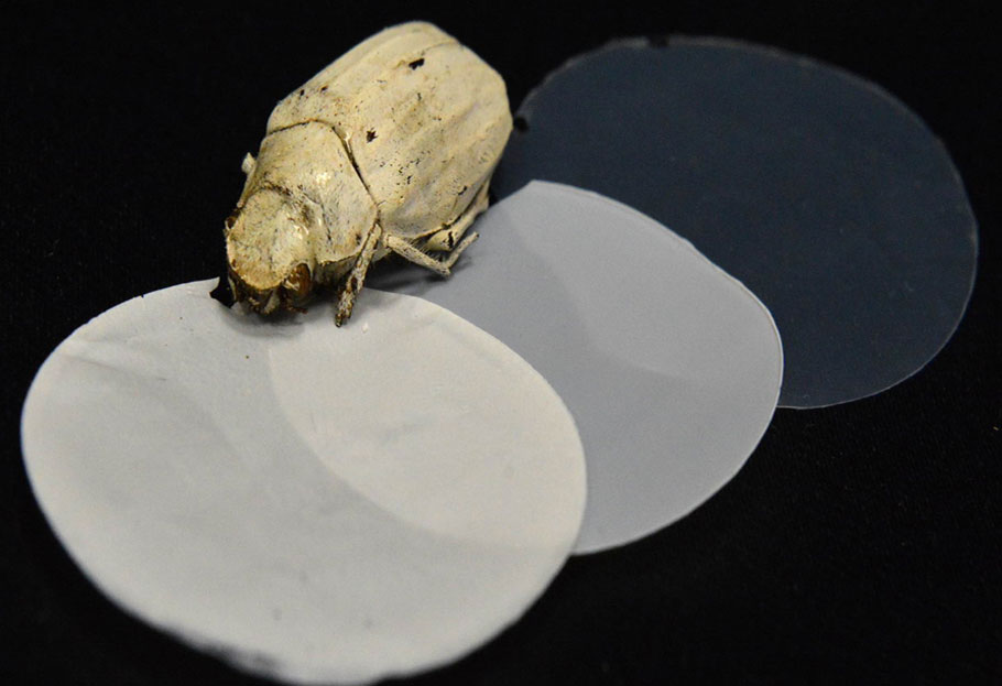 Dr Vignolini was inspired by the iridescent colours of the natural world caused by a material’s structure rather than the presence of pigments. The shiny metallic blue fruit of marble berry (Pollia condensate) is one of the most striking examples that Dr Vignolini has studied, with colour reflectance changing between cells and giving the fruit a glittery appearance. A different example is the Cyphochilus beetle, which she discovered is whiter than paper thanks to ultra-thin scales deflecting all colours.