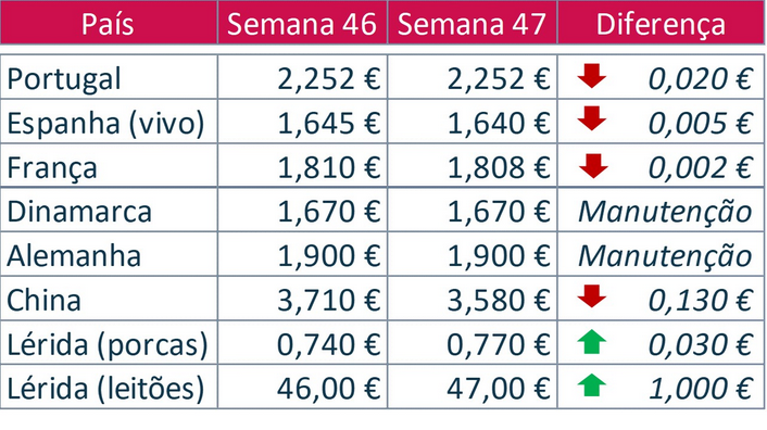 Este ano o verão de São Martinho estendeu-se a toda a Europa e assistimos a um mês de novembro com temperaturas atipicamente altas e, por conseguinte, não se verifica um decréscimo acentuado de consumo. Não significa que a tendência decrescente de consumo de carne de porco nos países nórdicos se inverta, mas que a Europa ganha tempo para a retoma da importação chinesa (que já se faz sentir).