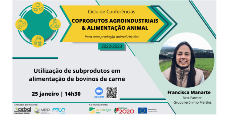 O Centro de Biotecnologia Agrícola e Agro-Alimentar do Alentejo (CEBAL) convida-o a participar na próxima sessão do Ciclo de conferências, que irá terá lugar no dia 25 de janeiro, pelas 14h30, tendo como convidada a Dra. Francisca Manarte, gestora da exploração agrícola da Best Farmer, do Grupo Jerónimo Martins, em Barcelos, que irá apresentar a palestra intitulada: “Utilização de subprodutos em alimentação de bovinos de carne”.