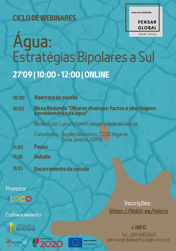 No âmbito da 13ª edição da Universidade Pensar Global Agir Local, a In Loco organiza o ciclo de webinares “Água: Estratégias bipolares a sul”, que decorrerá a partir do mês de setembro.