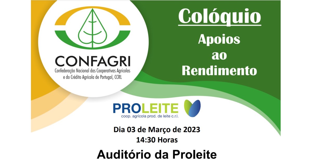 No dia 3 de Março de 2023, pelas 14h30, vai realizar-se, no auditório da Proleite, um Colóquio sobre Apoios ao Rendimento, com técnicos da CONFAGRI, onde serão abordados os ecorregimes da PEPAC.