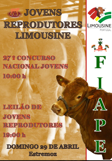 A ACL anuncia o Concurso nacional de jovens reprodutores Limousine que decorrerá no próximo dia 29 de abril de 2018 na FIAPE em Estremoz.